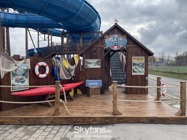 - der Eingang des Sky Rafting wurde mit einer Bootshütte mit dem Thema „Rafting im Allgäu“ neu gestaltet. Zudem wurden die Boote optisch überholt