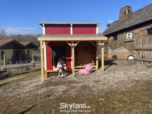 - in der Kids Farm zogen sämtliche Tierfiguren rund um das neu entstandene Gebäude ein. Zudem wurde frisches Hackschnitzel auf dem Gelände verteilt